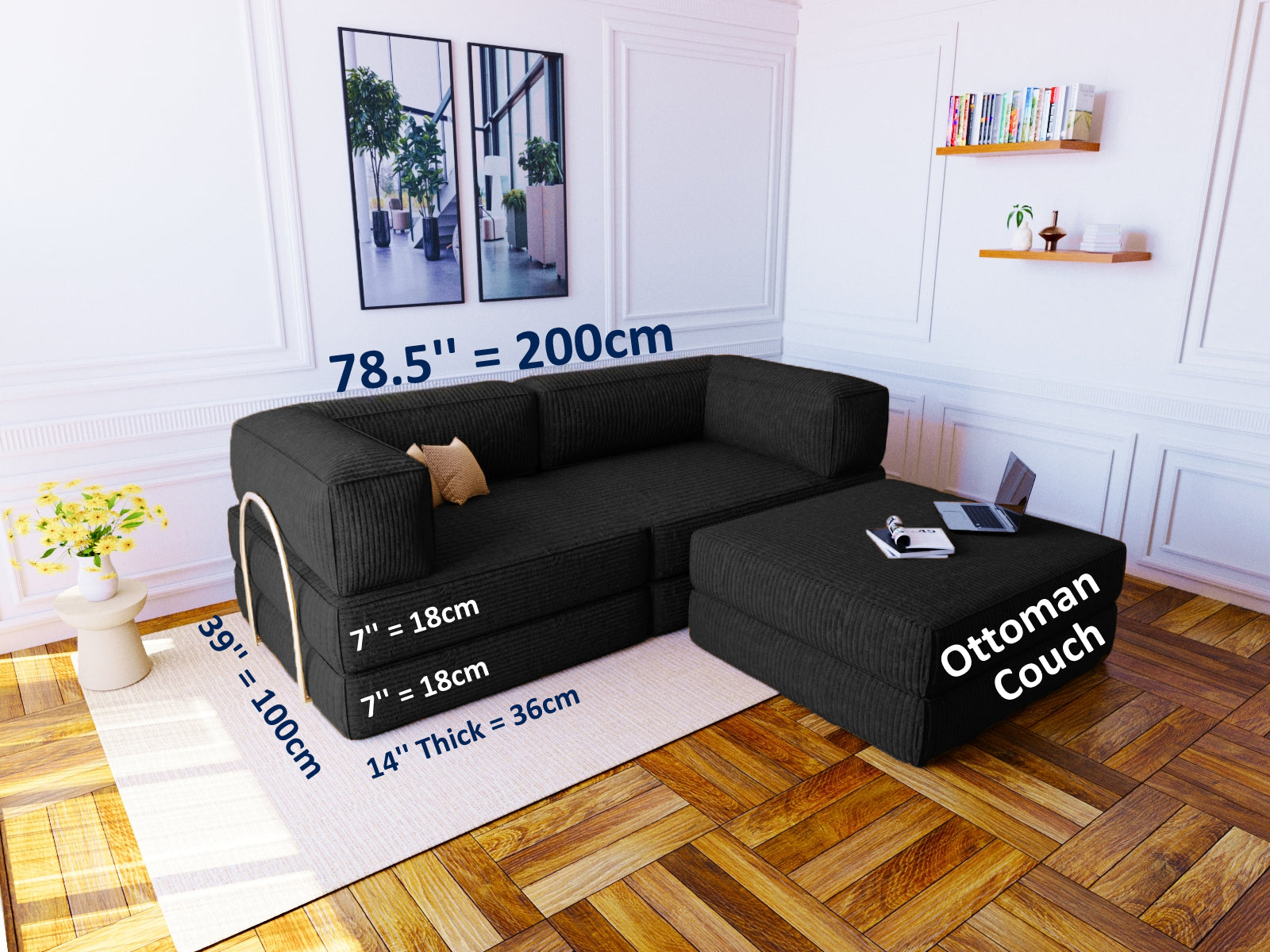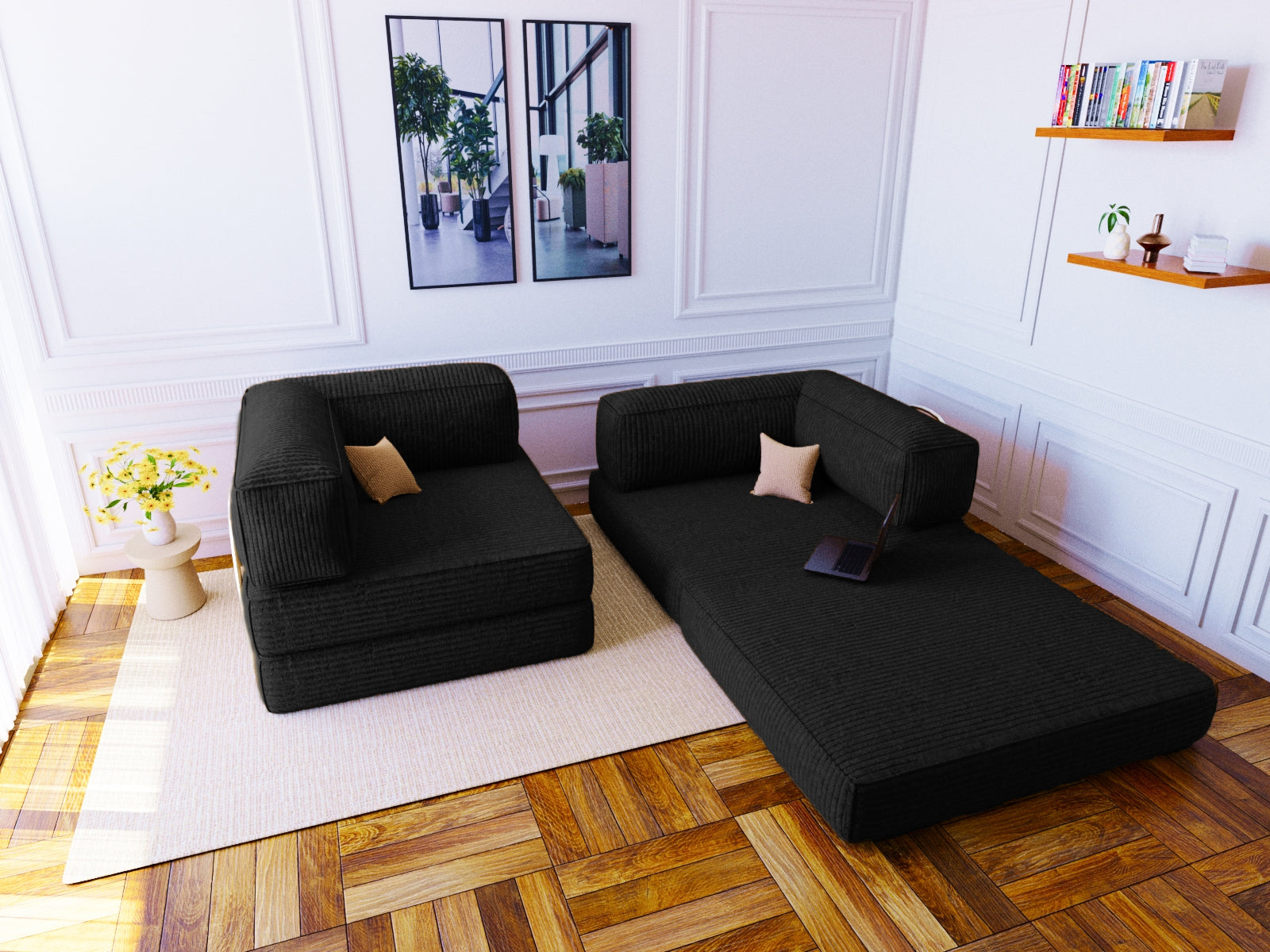 - The floor seat can be folded and transformed into a single-seater sofa.